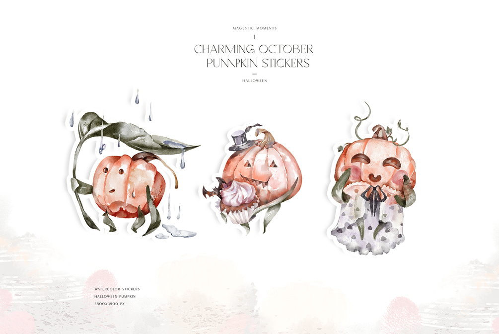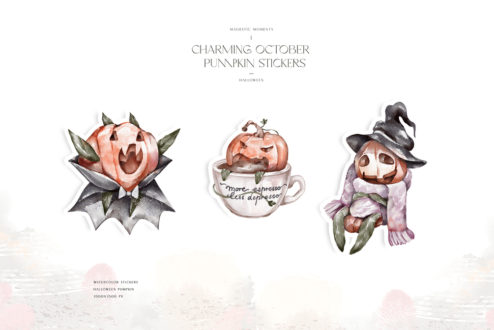 ✦ Pumpkin Stickers. 6 Halloween pumpkin stickers (3500x3500px, 300 dpi)